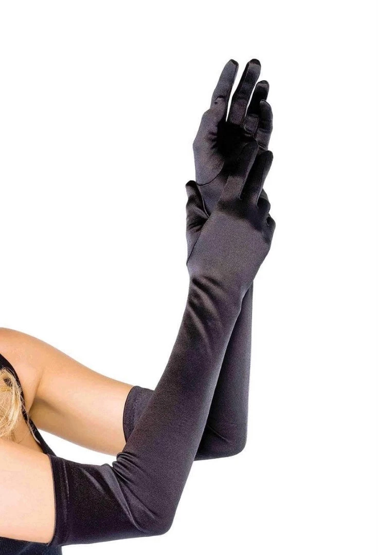 From fingertip to just above the elbow, the smooth satin material stretches to fit most for a sexy tailored look and comfortable wear.