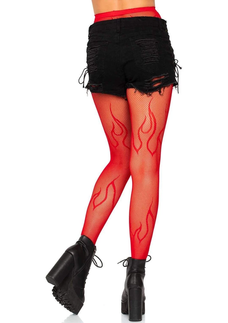 The flame fishnet tights are a bold, must-have statement accessory. The fun fishnets pair perfectly with shorts, skirts or a little black dress. Or add them to a sexy red devil costume to complete the look. The stretchy fishnet fabric make these tights ultra-comfortable and easy to care for.