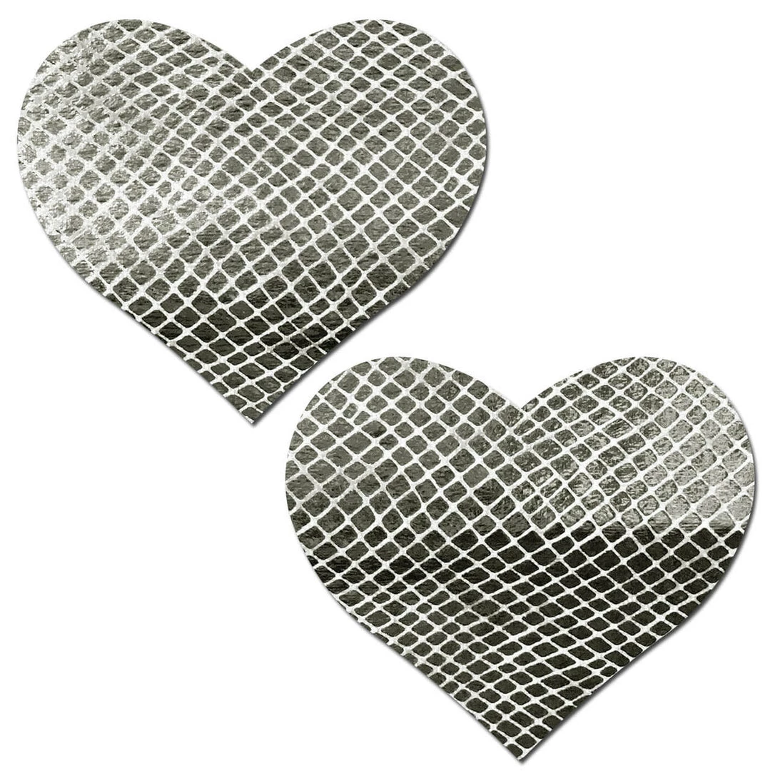 Love: Galactic Silver on White Velvet Heart Nipple Pasties by
