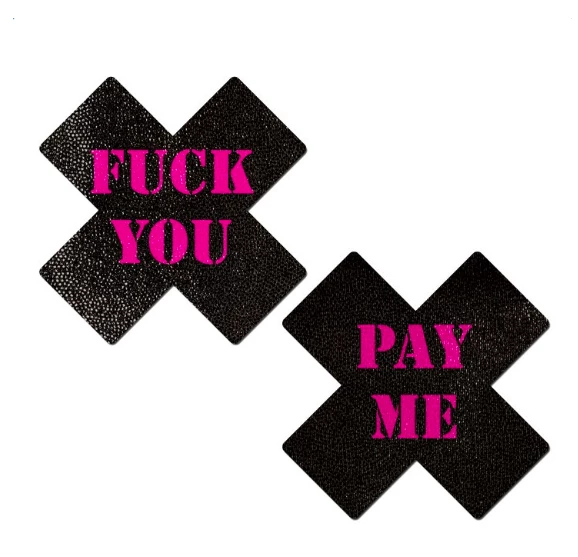 Be the first to review “PASTEASE Plus X: Black With Pink ‘Fuck You, Pay Me’ Cross Nipple Pasties” Cancel reply