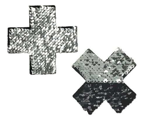 Be the first to review “PASTEASE Plus X: Silver & Black Flip Sequin Cross Nipple Pasties ACCESSORIES” Cancel reply