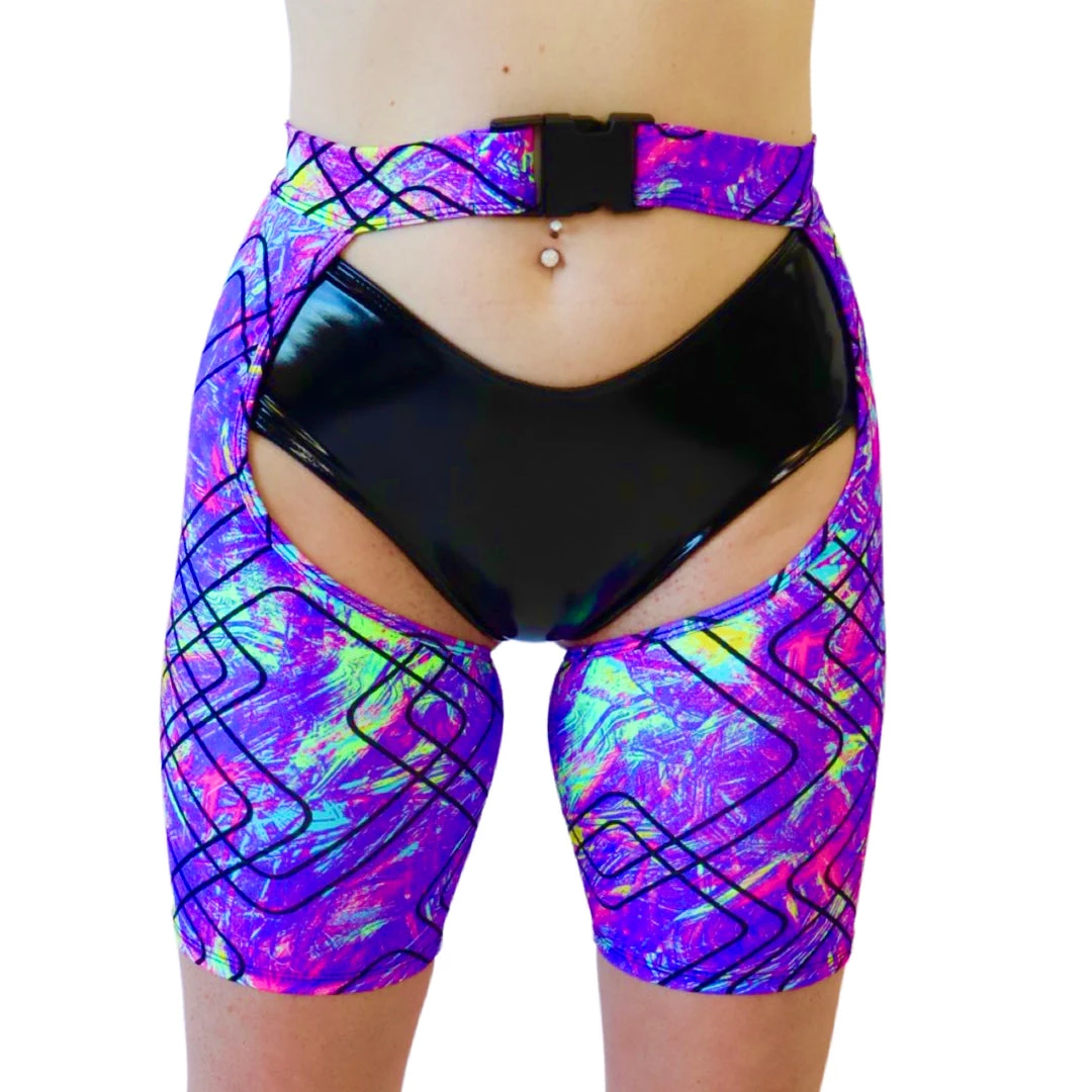 Looking for a POPPING addition to add to your festival outfit? Our Color Pop Asap Buckled Short Chap has you covered! Made from a cotton / spandex blend and secured by a waist high front buckle. These stretchy, figure flattering chaps are a great addition to bottoms that need some flair!