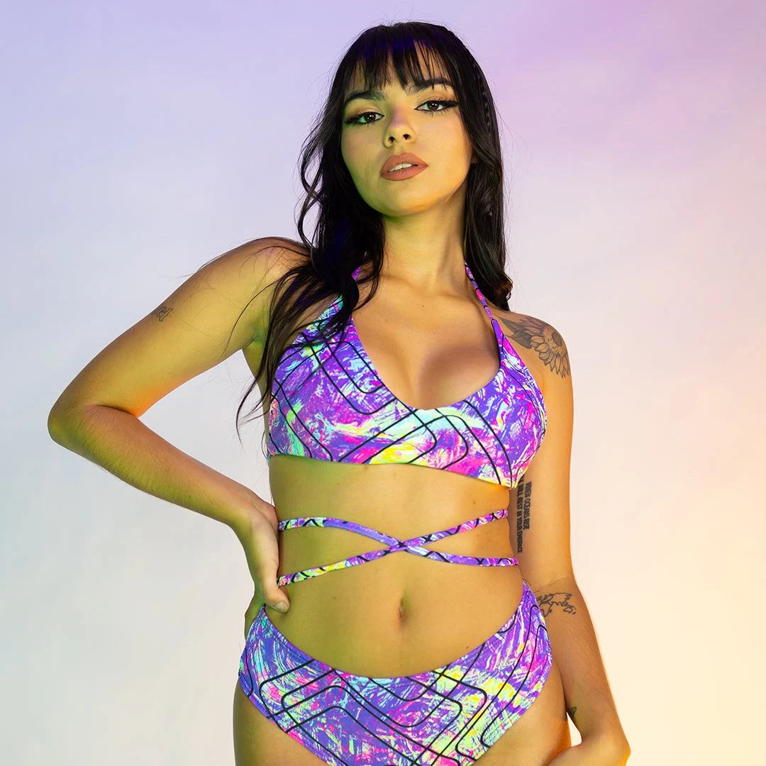 STAND OUT and POP at the next festival or rave with our Color Pop Wrap-Around Top! Made from a cotton and spandex blend, this top is stretchy, breathable, and most importantly NOT see through. Designed with support and a flattering silhouette in mind, this bikini style top is great for our girlies in all shapes and sizes!