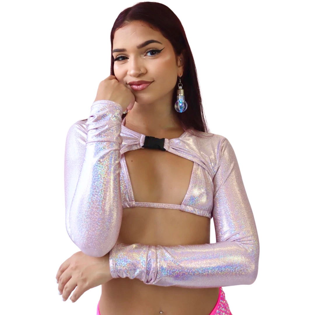 COSMIC MIST SHRUG TOP WITH BUCKLE.