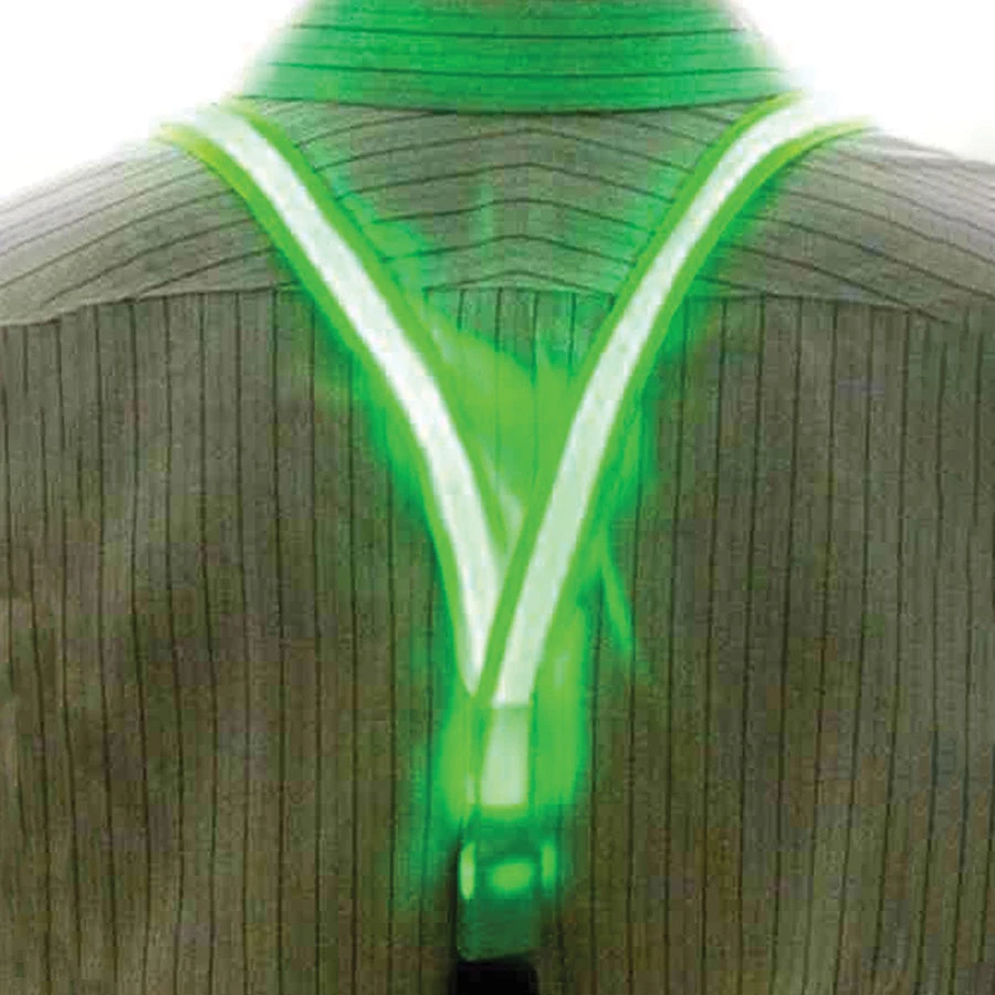 Light up any bottoms you have and make it a party! These fun Led Suspenders come in Blue and Green. Attaches to any pant, shorts, bottoms by clip.