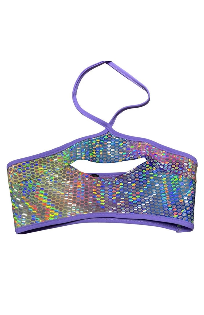 OUR LIQUID MIRROR TIE-DYE KEYHOLE TOP SHOWS JUST ENOUGH TO KEEP ‘EM WANTING MORE. PERFECTLY PAIRED WITH OUR MATCHING ASSLESS CHAPS AND HIGH-WAISTED BOTTOMS.
