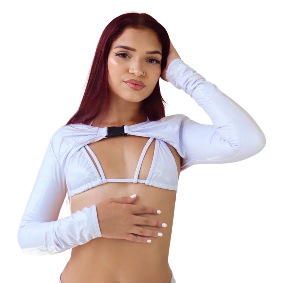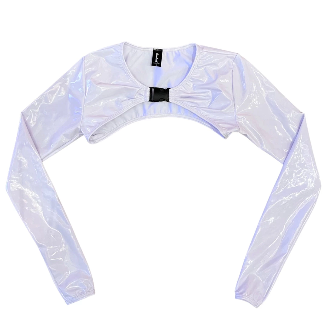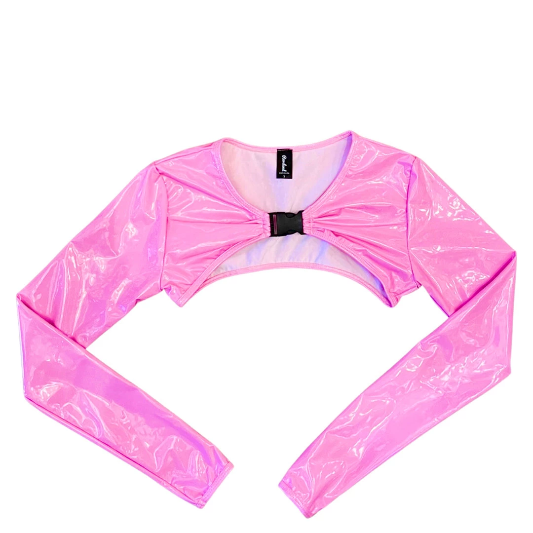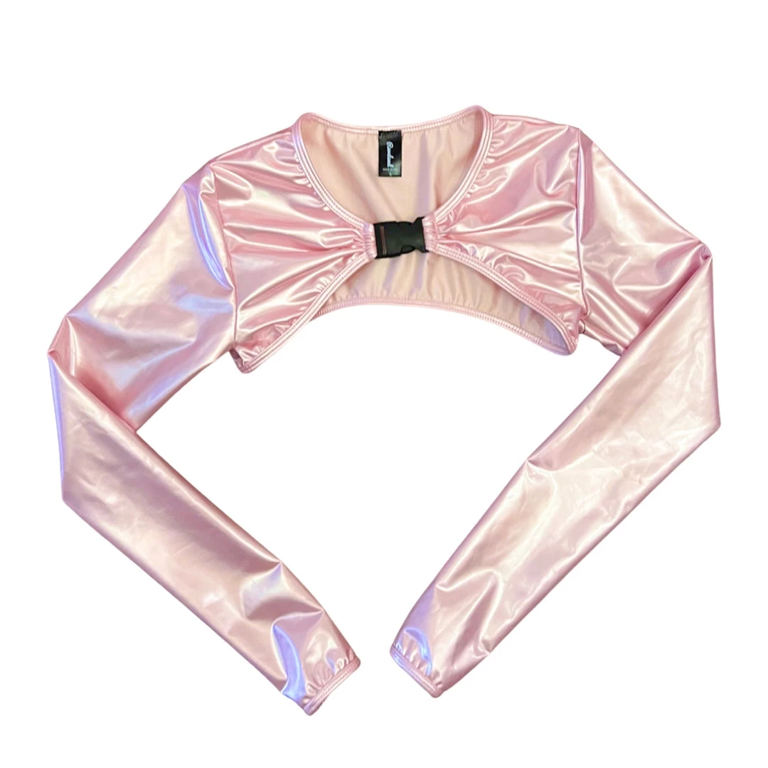 Sleek and sexy, this fierce accessory top is nothing to shrug off! Our Lovely Latex Shrug Top is offered in pastel color swatches and is secured at the collar by buckle. Paired with our Lovely Latex Cage Top this playful sexy vibe screams dancefloor queen!