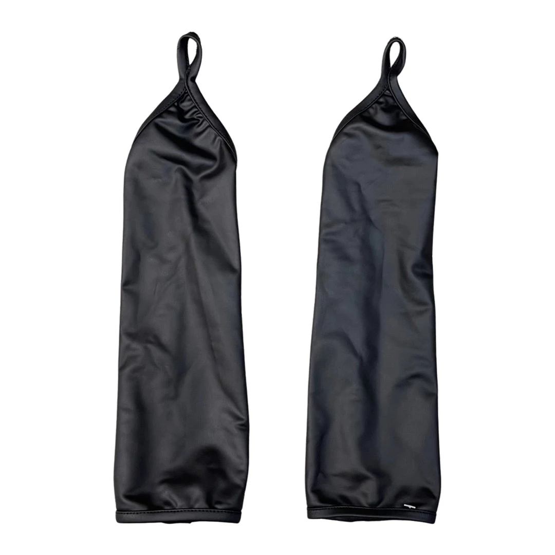 PAIR OF MATTE BLACK GLOVES, ONE SIZE FITS S-M-L.