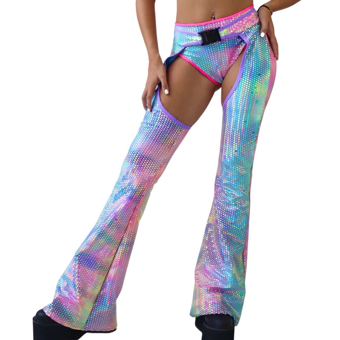 LIQUID MIRROR LONG ASSLESS BUCKLE CHAPS