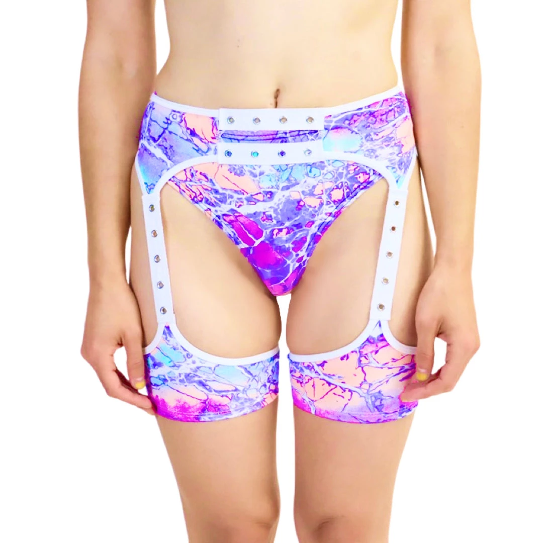 Our Crazy Short Chaps synch you in at your waist and the top of your thighs. Add them to a perfectly color coordinated outfit or match them with the rest of our Mixology collection. Our Mixology fabric is made of a stretchy cotton/spandex blend that is soft and breathable against the skin.