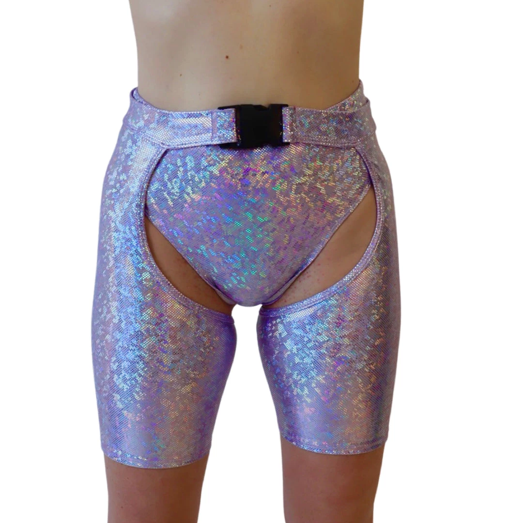 Define your shine with our Retro Glitter Asap Buckled Short Chap! These chaps buckle at your waist and are offered in multiple color swatches. Add them to a perfectly color coordinated outfit or match them with the rest of our Retro Glitter collection.