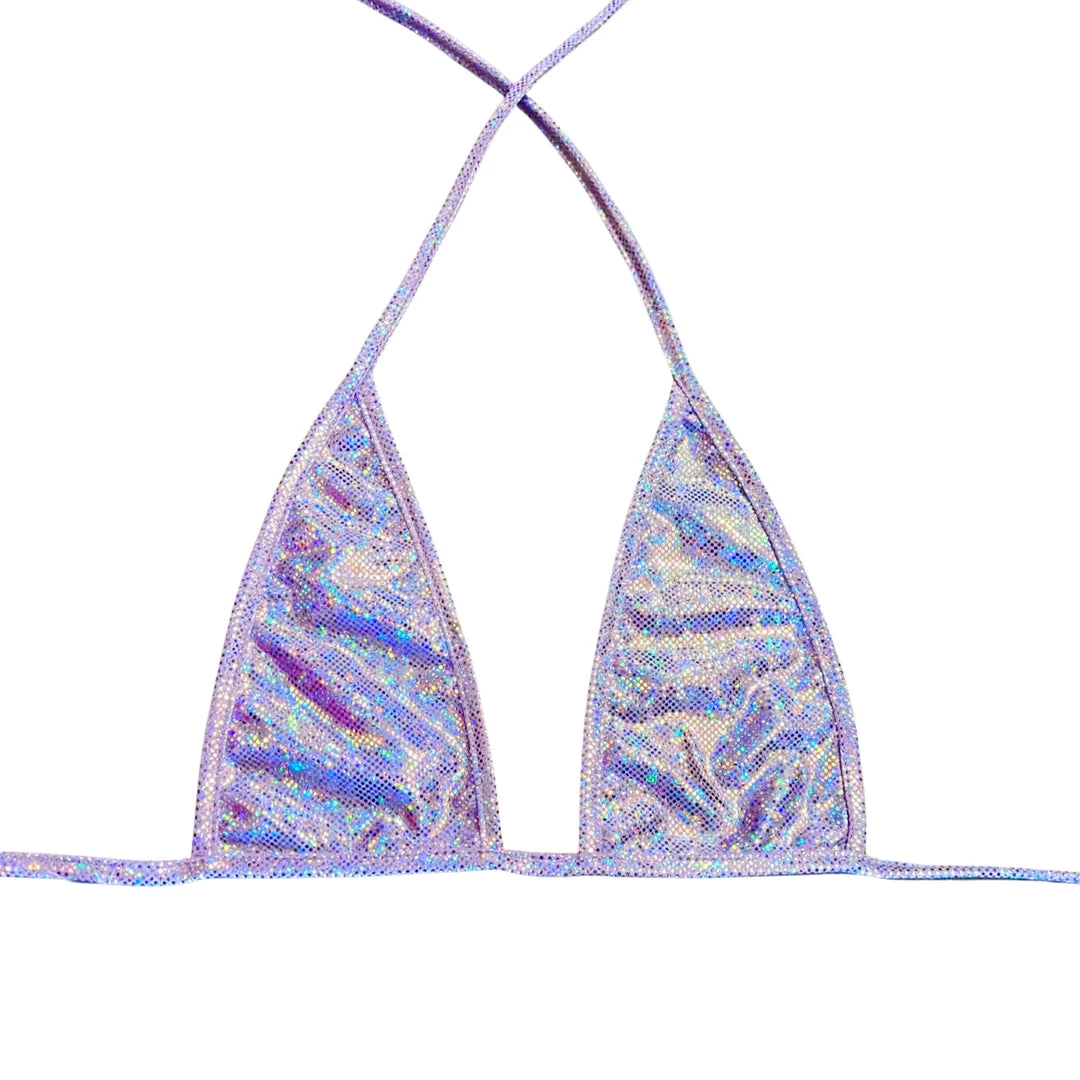 Get your shimmer on with our Retro Glitter Moon Bra Top! This bikini style top on its own is a super versatile garment ready to fit any sparkle themed ensemble! Pair with the Retro Glitter Gloves, the High Waisted Brazilian Bottoms, and the Buckle Chaps from the Retro Glitter Collection for Glammed out glitter look!
