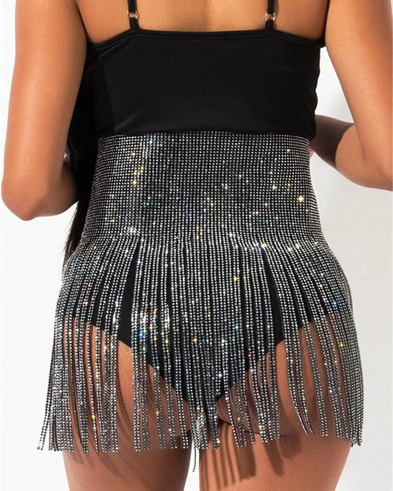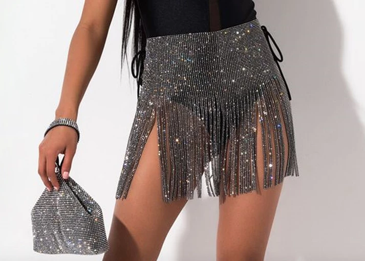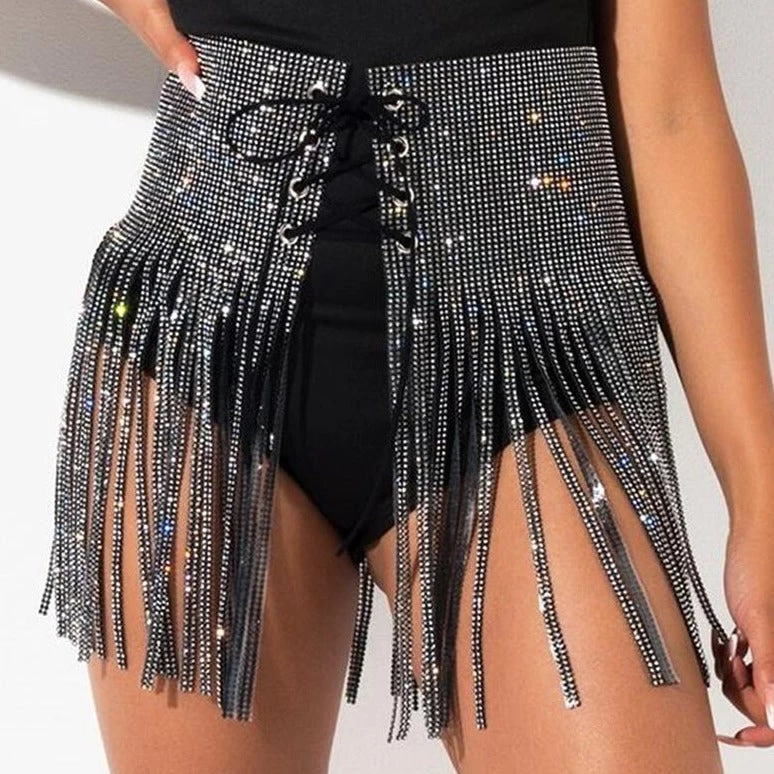 vip section diamond fringe black skirt with string closer for the front