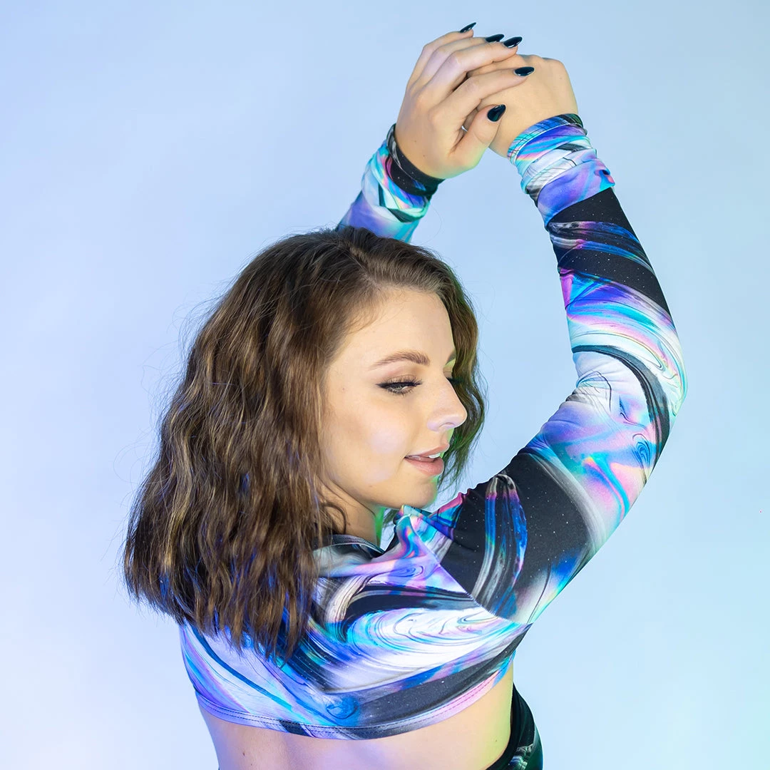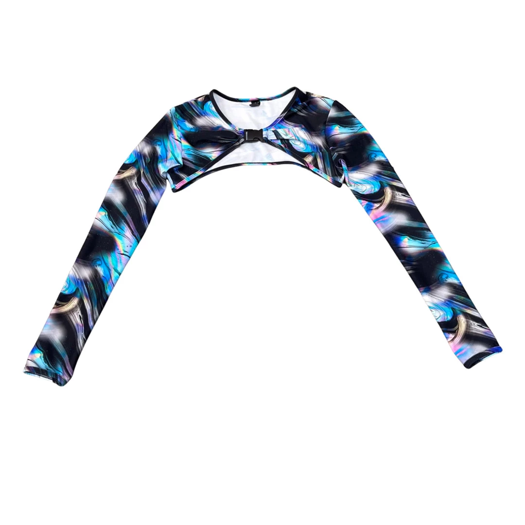 LIQUID GALAXY SHRUG TOP WITH BUCKLE.