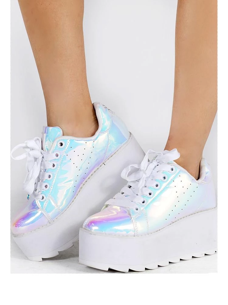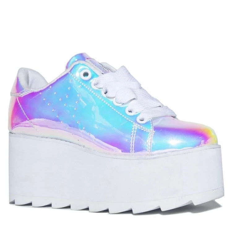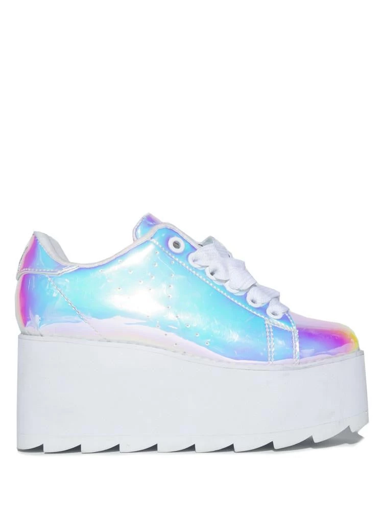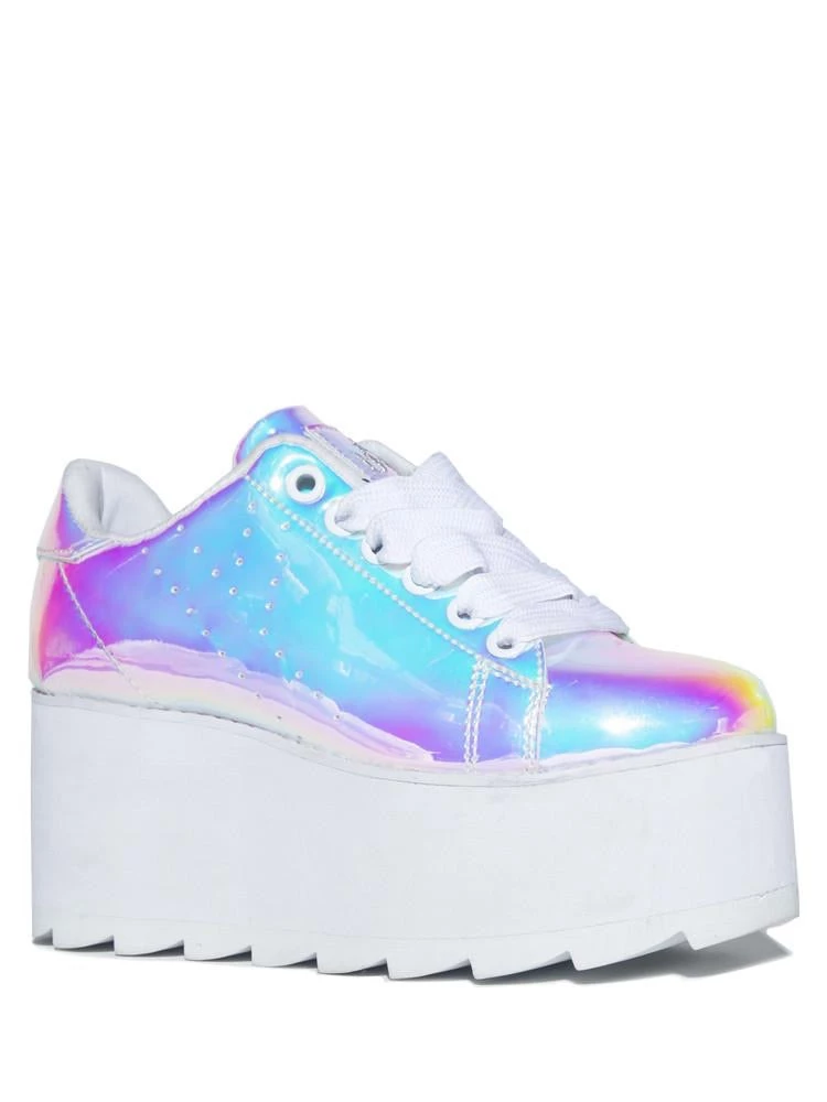 SKU: yru-4466494242896 Categories: LIQUID MIRROR COLLECTION, PLATFORMS, SHOES, WOMEN Tags: Holographic, Holorgram, Lala, Lala atlantis, LIQUID MIRROR COLLECTION, PLATFORM, Shoes, Sneakers