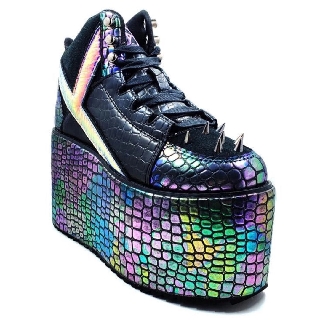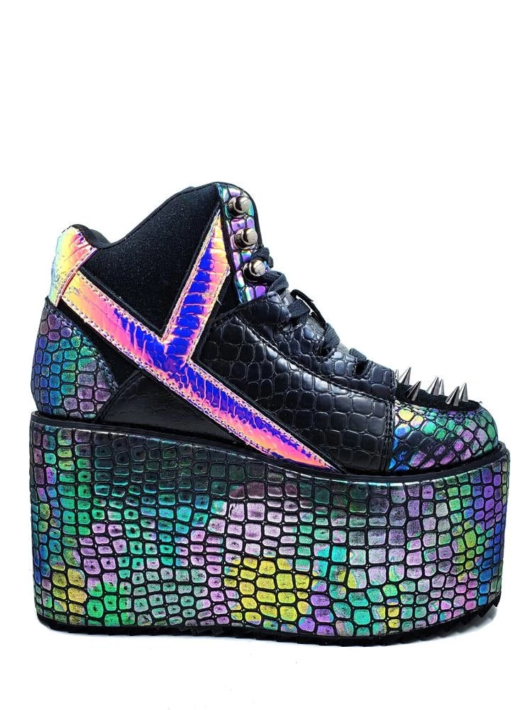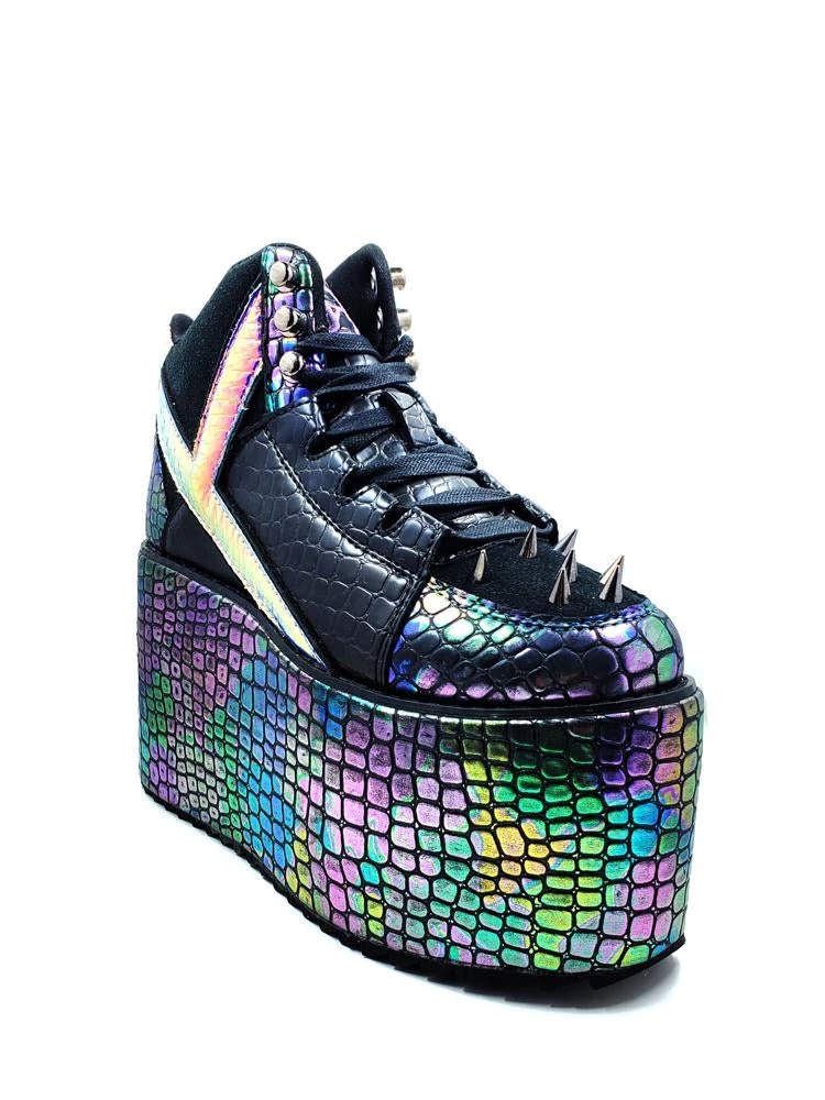 Oil Slick Dragon Scale material w/ Atlantis ‘Y’, Black suede and PU vegan upper